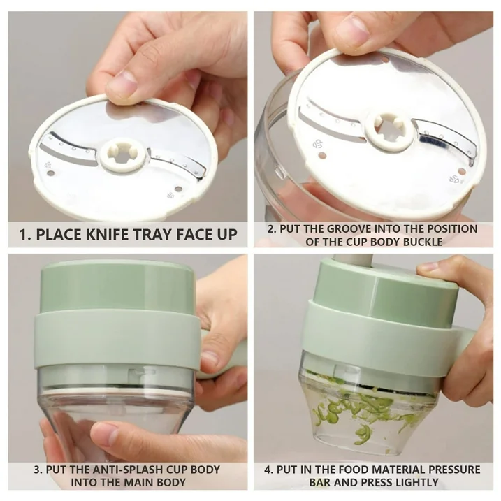 🥕 4 - in - 1 Juego de cortadores eléctricos portátiles para verduras