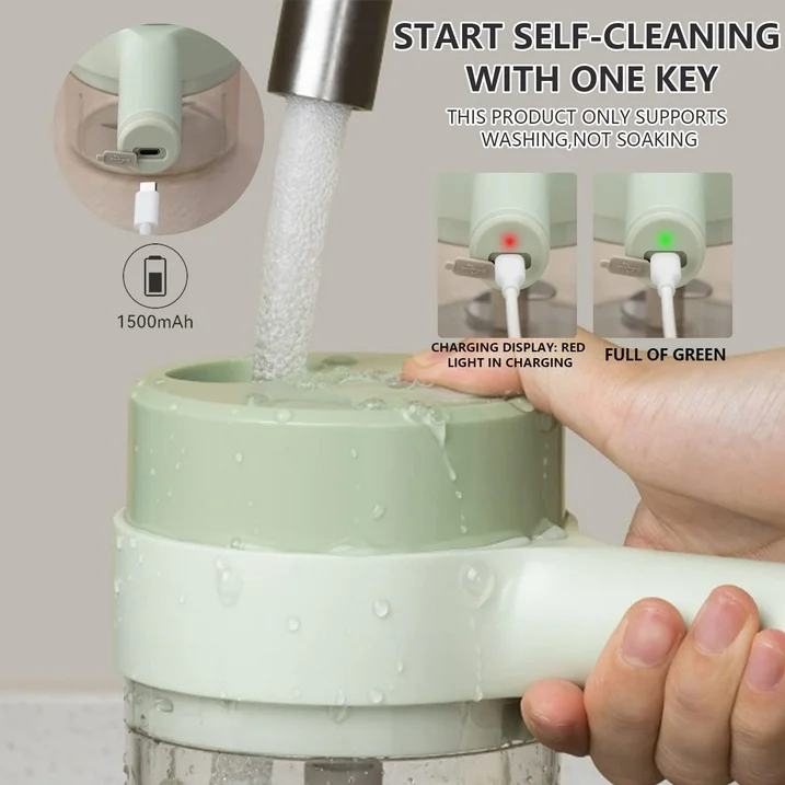 🥕 Cortador Eléctrico de Verduras Portátil 4 en 1 – Procesador de Alimentos Inalámbrico Recargable